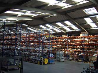 Einblick Lager / Versand In unseren Zentrallagern führen wir ca. 150.000 Artikel- über die Lager und Logistik unserer angeschlossenen Hersteller werden weitere 290.000 Artikel bevorratet. Unsere modernen Hochregalanlagen und Verpackungseinrichtungen sorgen für den optimalen Ablauf im Versand. Eine ausgefeilte Logistik mit verlässlichen Speditionen und Paketdiensten sichert die schnelle Belieferung der Kunden. | |
